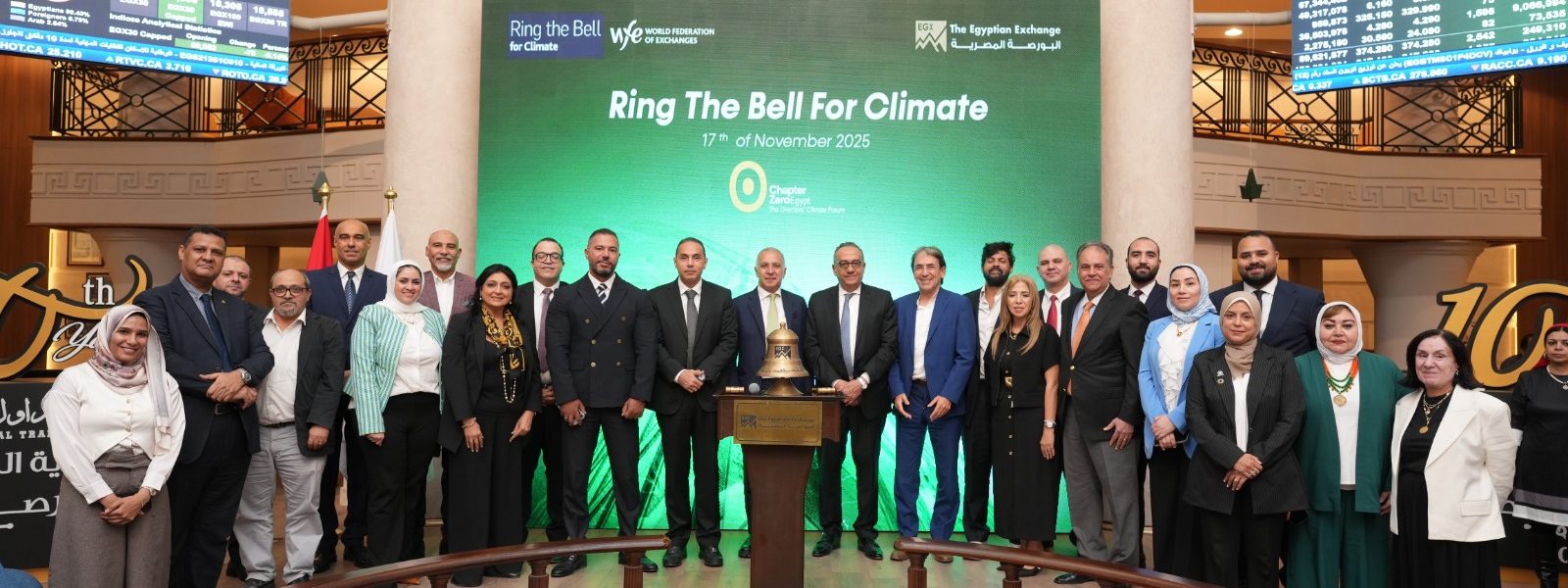 افتتح الدكتور إسلام عزام ، رئيس البورصة المصرية فعالية “قرع الجرس من أجل المناخ”، والتي أقيمت اليوم الاثنين، الموافق 17-نوفمبر-2025، في المبنى التاريخي للبورصة المصرية، وذلك بالتعاون مع الاتحاد العالمي للبورصات (WFE) وبالتزامن مع مؤتمر (COP30) المنعقد في البرازيل في الفترة من 10-نوفمبر-2025 إلى 21-نوفمبر-2025، وذلك بحضور كل من الأستاذ/ محمد صبري – نائب رئيس البورصة، والمهندس/ أحمد السويدي – رئيس مجلس إدارة جمعية شابتر زيرو إيجيبت (Chapter Zero Egypt) ، والأستاذ/ أيمن صلاح – المدير التنفيذي للجمعية.