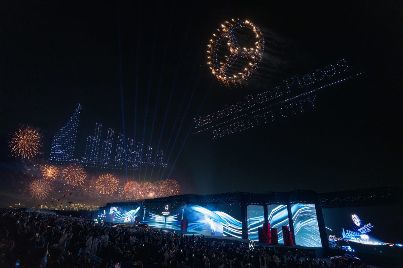 تمثّلت الأولى في العرض الحصري لمفهوم” فيجين أيكونيك” في منطقة الشرق الأوسط، أحدث ابتكارات مرسيدس-بنز الابداعية، المستلهم من العصر الذهبي لتصميم السيارات في ثلاثينيات القرن الماضي، والذي يجسّد جوهر العلامة التجارية الخالص. وافتُتح الإطلاق الكبير بعرضٍ قدّمه التينور الإيطالي الأسطوري أندريا بوتشيلي، مرنماً نغمات لا تُنسى خلال الأمسية.