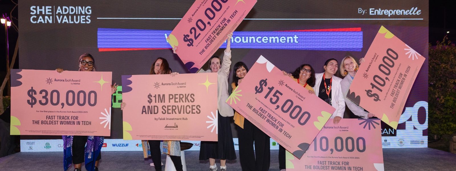 وشهد حفل توزيع جائزة Aurora Tech Award العام الماضي في القاهرة تكريم إنجازات رائدات الأعمال الاستثنائيات من الأسواق الصاعدة. وحصدت سولابي أكينبلو، مؤسِّسة شركة HerVest في نيجيريا، المركز الأول، فيما جاءت لوريتشو غارسيا أرّازتوا، مؤسِّسة Nido Contech في تشيلي، في المركز الثاني، وحصلت شريا براكاش، مؤسِّسة شركة FlexiBees في الهند، على المركز الثالث. وجاءت كل من لورا فيلاسكيز هيريرا، مؤسِّسة شركة Arkangel AI في كولومبيا، وليوني كورن، مؤسِّسة UpLeap في سويسرا، في المركزين الرابع والخامس على التوالي.