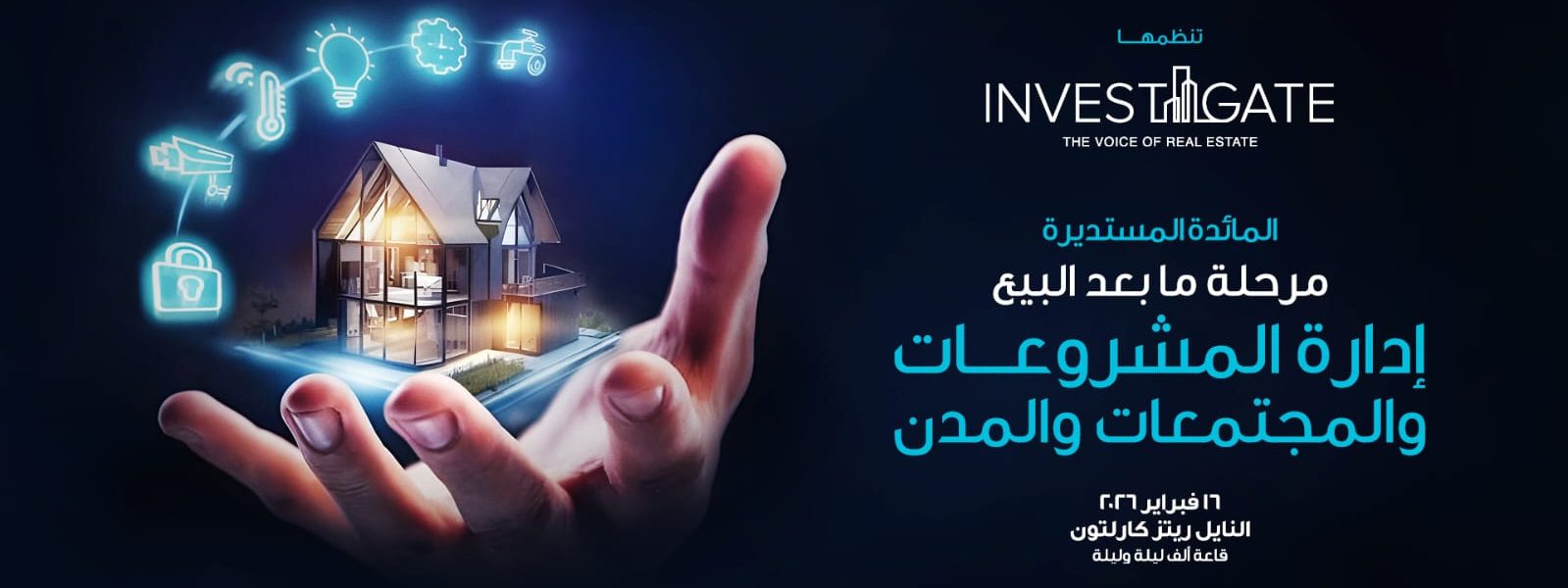 إنفستجيت تطلق مائدتها المستديرة ال 27 +بعنوان “مرحلة ما بعد البيع: إدارة المشروعات والمجتمعات والمدن”، والمقرر عقدها يوم الاثنين 16 فبراير 2026 الساعة 9:00 صباحاً بفندق نايل ريتز كارلتون – قاعة ألف ليلة وليلة.
