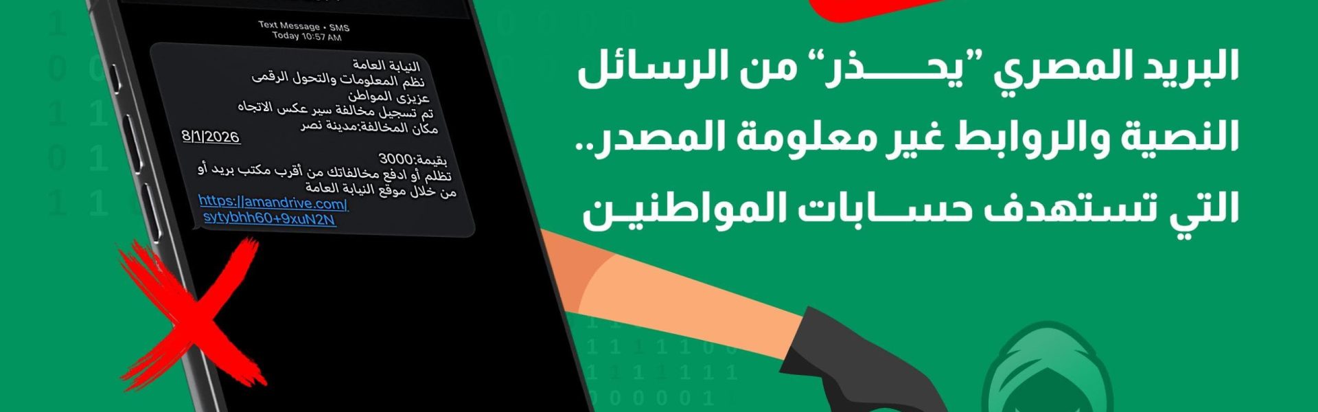 ويوضح البريد المصري أن جميع هذه الرسائل غير صادرة عنه، محذرًا جميع المواطنين من حملات التصيد الاحتيالي الجديدة عبر الرسائل النصية المزيفة، ويدعو البريد المصري جميع المواطنين إلى اليقظة والحذر، وعدم التفاعل مع مثل هذه الرسائل، حفاظًا على سلامة حساباتهم المالية والشخصية؛ ويؤكد البريد المصري أن الرسائل الصادرة بشأن المخالفات المرورية تتضمن فقط رابط موقع النيابة العامة الرسمي وهو https://ppo.gov.eg/tr ولا يتم إدراج أي روابط أخرى بخلاف هذا الرابط الرسمي.