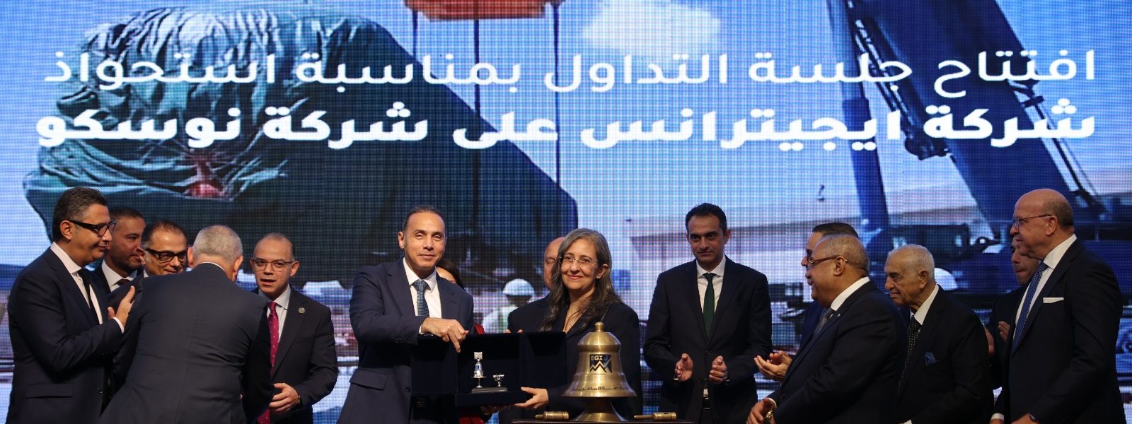 نظمت البورصة المصرية اليوم فعالية “قرع الجرس” احتفالًا بالإطلاق الرسمي للمجموعة المتكاملة بين شركة “المصرية لخدمات النقل والتجارة – إيجيترانس” (ETRS.CA) والشركة الوطنية لخدمات النقل وأعالي البحار (نوسكو)، عقب استحواذ إيجيترانس على 99.9٪ من أسهم نوسكو، بحضور الدكتور/ إسلام عزام – رئيس البورصة المصرية، والفريق مهندس/ كامل الوزير – نائب رئيس مجلس الوزراء للتنمية الصناعية وزير الصناعة والنقل، والدكتورة/ رانيا المشاط – وزيرة التخطيط والتنمية الاقتصادية والتعاون الدولي، والمهندس/ حسن الخطيب – وزير الاستثمار والتجارة الخارجية، والدكتور/ شريف فاروق – وزير التموين والتجارة الداخلية، والدكتور/ محمد فريد صالح – رئيس الهيئة العامة للرقابة المالية، والسيد/ ماجد شوقي – رئيس مجلس إدارة إيجيترانس، بالإضافة إلى قيادات حكومية واقتصادية.