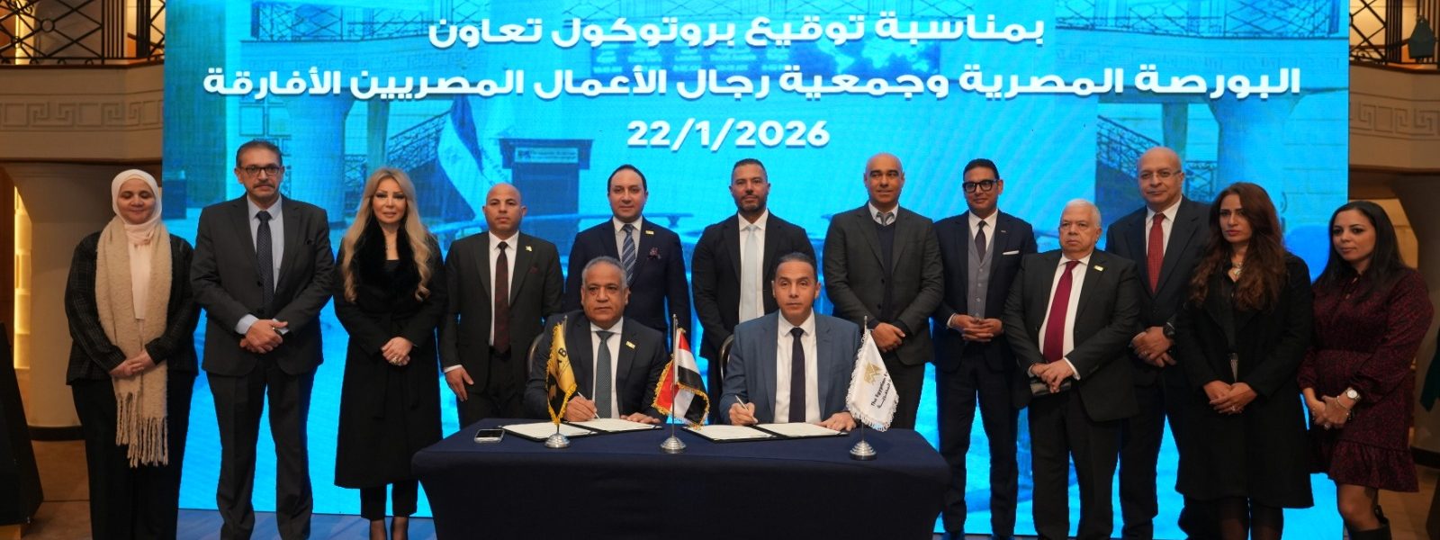 احتفلت البورصة المصرية، اليوم الخميس الموافق 22 يناير 2026، بقرع جرس التداول، وذلك بمناسبة توقيع بروتوكول تعاون مع جمعية رجال الأعمال المصريين الأفارقة، في إطار تعزيز الشراكة المؤسسية بين مؤسسات الدولة ومجتمع المال والأعمال، وذلك بمقر البورصة المصرية، وبحضور قيادات الجانبين وأعضاء مجلس إدارة الجمعية.