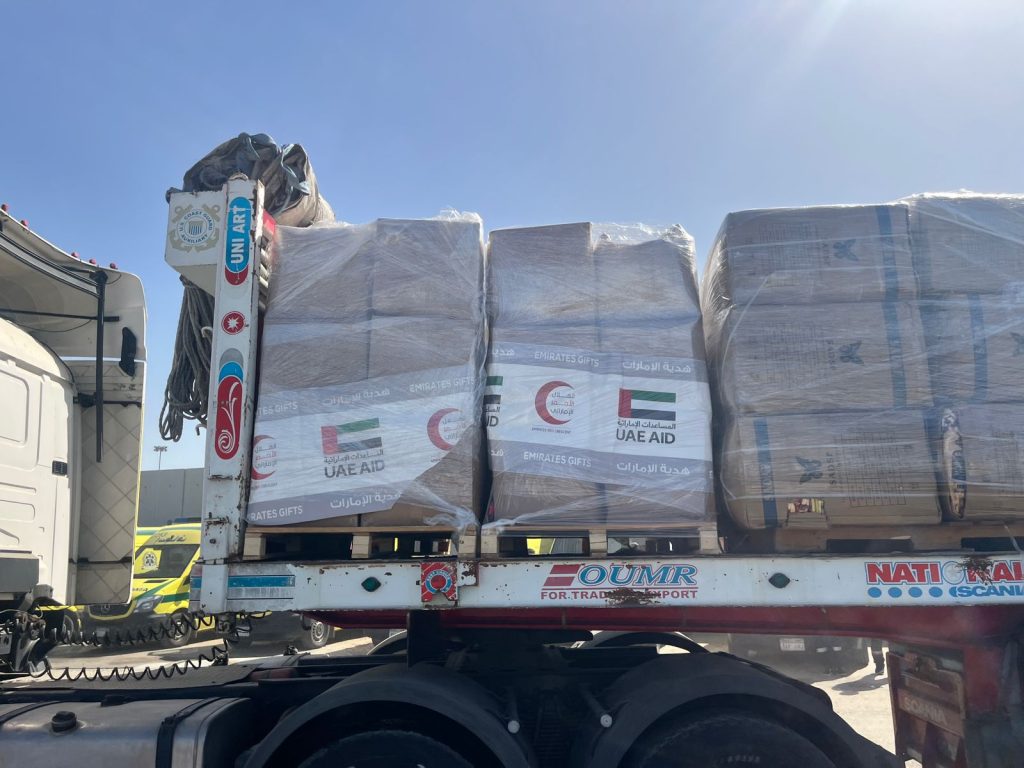 عبور القافلة الإماراتية رقم 300 من مصر إلى معبر كرم أبو سالم تمهيدا لدخولها غزة