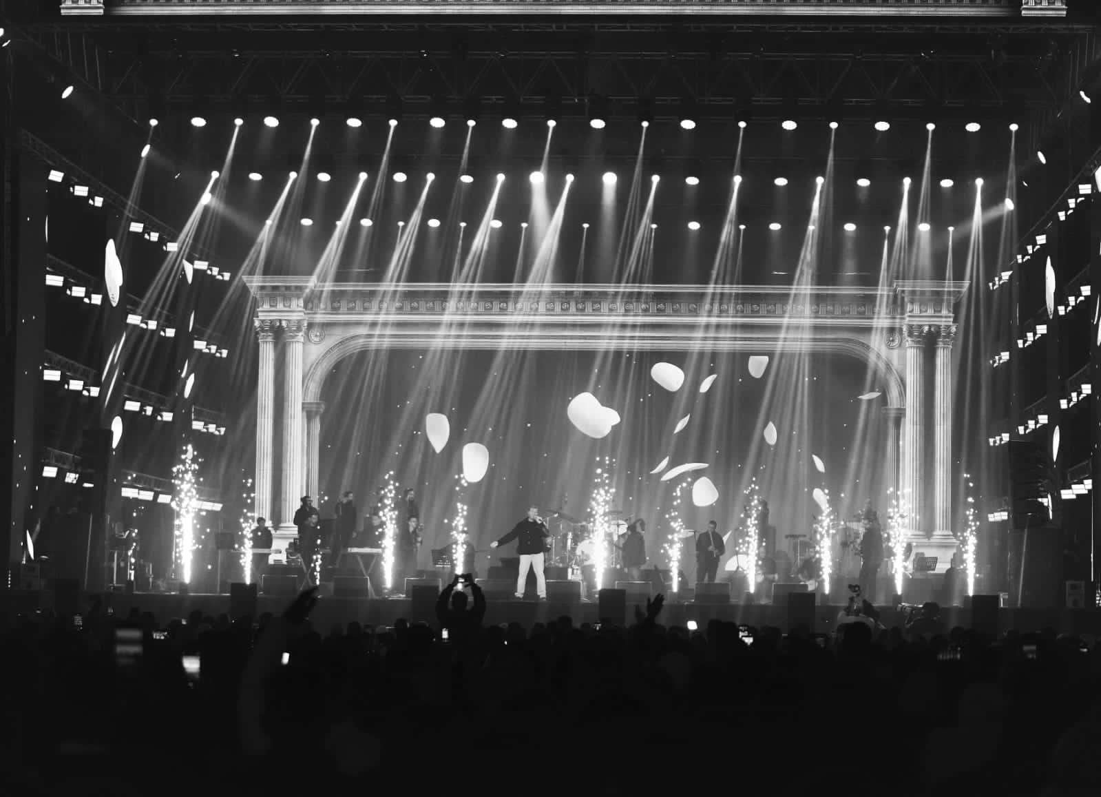وحرص رامي في بداية حفله على توجيه كملة تهنئة للجمهور بالعام الجديد وتمنى لهم والشعوب العربية الخير والسلام الدائم .