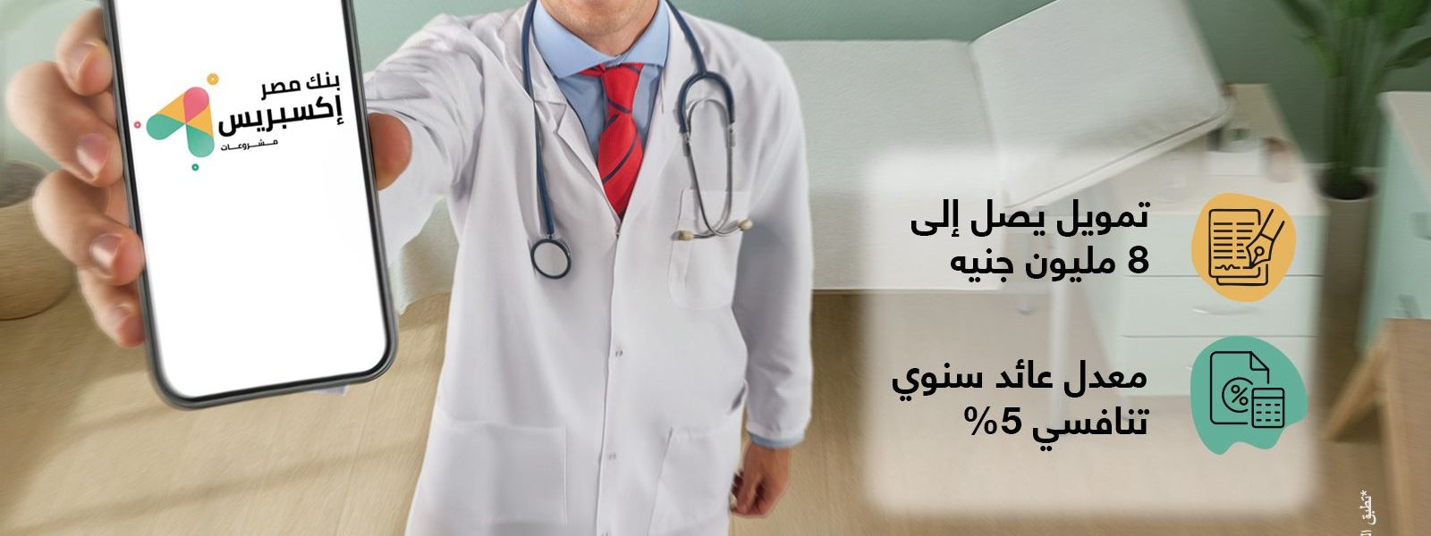 بنك مصر يطلق تمويل إكسبريس للأطباء حتى 8 مليون جنيه لدعم القطاع الطبي بسعر عائد تنافسي 5% ضمن مبادرة البنك المركزي المصري