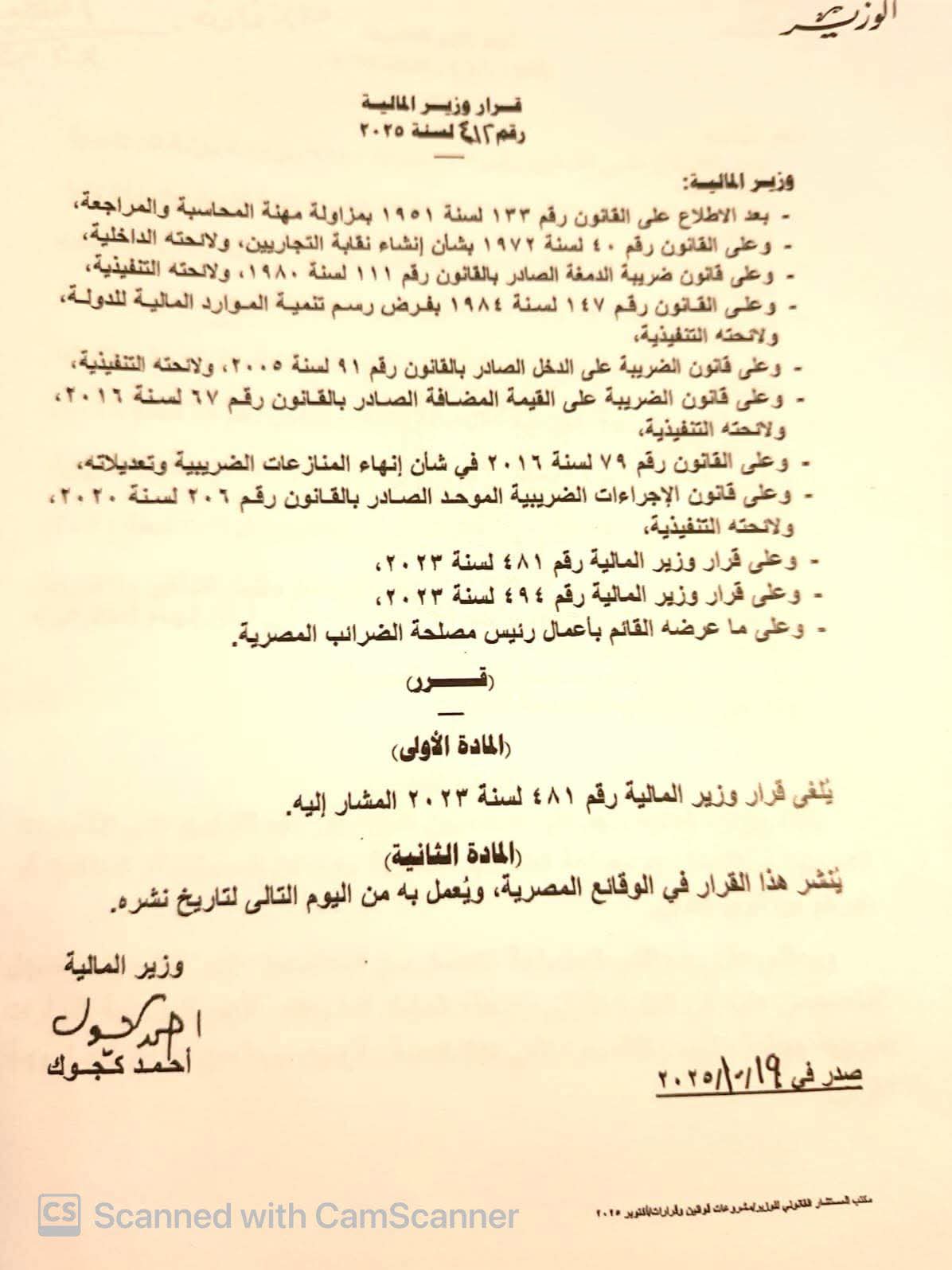 ونص قرار وزير المالية رقم 481 لسنة 2023: «على أن المحاسبين المقيدين بالسجل هم من يجوز لهم فقط التوقيع على الإقرارات الضريبية، وكذلك التعامل مع مصلحة الضرائب نيابة عن الممولين أو المكلفين أو غيرهم من ذوي الشأن وحظر موظفي المصلحة التعامل مع المحاسبين غير المقيدين».