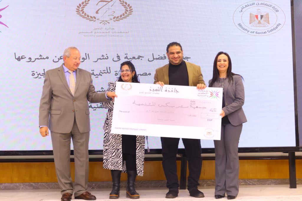 وعن جائزة افضل جمعية في نشر الوعى عن مشروعها فارت جمعية مصر بكرة للتنمية بالجيزة وفازت بالجوائز العينية جمعية سيدات الاعمال باسيوط ، مؤسسة امل مصر للتنمية ، جمعية تنمية المجتمع بالجورة بشمال سيناء، جمعية اشراقة حياة لتنمية المجتمع بالبدارى وفازت بشهادات التقدير جمعية جنات الخلود الخيرية بالقاهرة وجمعية رابطة المراة العربية .