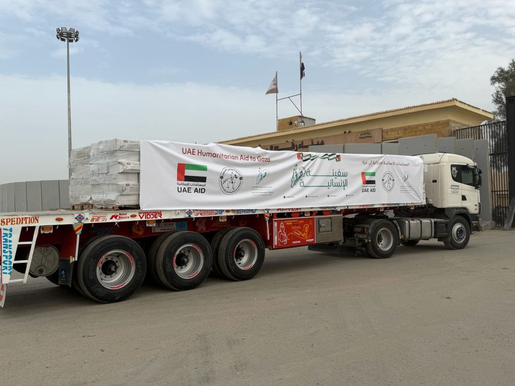 وكالة الإمارات للمساعدات تدعم غزة بقافلة جديدة إلى غزة عبر معبر كرم أبو سالم