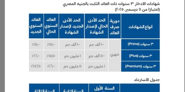 البنك التجاري الدولي مصر – CIB» يطلق شهادة 3 سنوات بعائد ثابت 17.25% أعلن البنك التجاري الدولي (CIB)، عن إطلاق شهادة جديدة لأجل 3 سنوات، اعتباراً من اليوم الخميس ١١ديسمبر ٢٠٢٥. وتأتي هذه الخطوة في إطار سعي البنك لتعزيز…